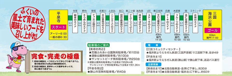 東尋坊の名前の由来は、怪力を頼りに暴れん坊僧で手に余り困った住民や仲間の僧達が、酒に酔わせ断崖絶壁から突き落としたとして伝わっていますが、もう一つの伝説として真柄覚念という僧と一人の女性をめぐり恋敵であり、海辺見物に誘われ酒に酔わされ、その時に真柄覚念と仲間の僧達に岸壁から突き落とされ、悲恋の舞台としての説も残っています。日本海の名勝 東尋坊の岩場から奥越山地・平泉寺にある東尋坊僧の住居跡までを往復。パワースポットとしても名高い平泉寺で力を養い、日本海夕日百選にも選ばれた東尋坊の夕陽に向かってゴールを目指す。大自然を肌で感じながら、三人の愛の物語を想い浮かべながら、歴史の道をお楽しみください。
